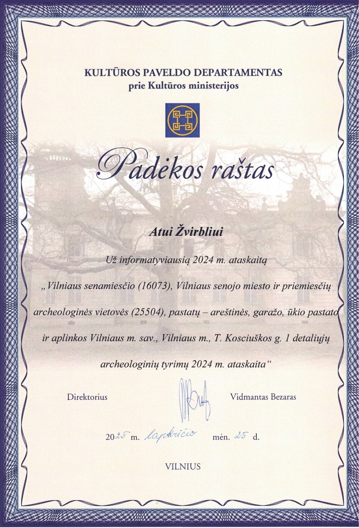 Patvirtinimą tyrimams iš Kultūros paveldo departamento esame gavę per 4 darbo dienas